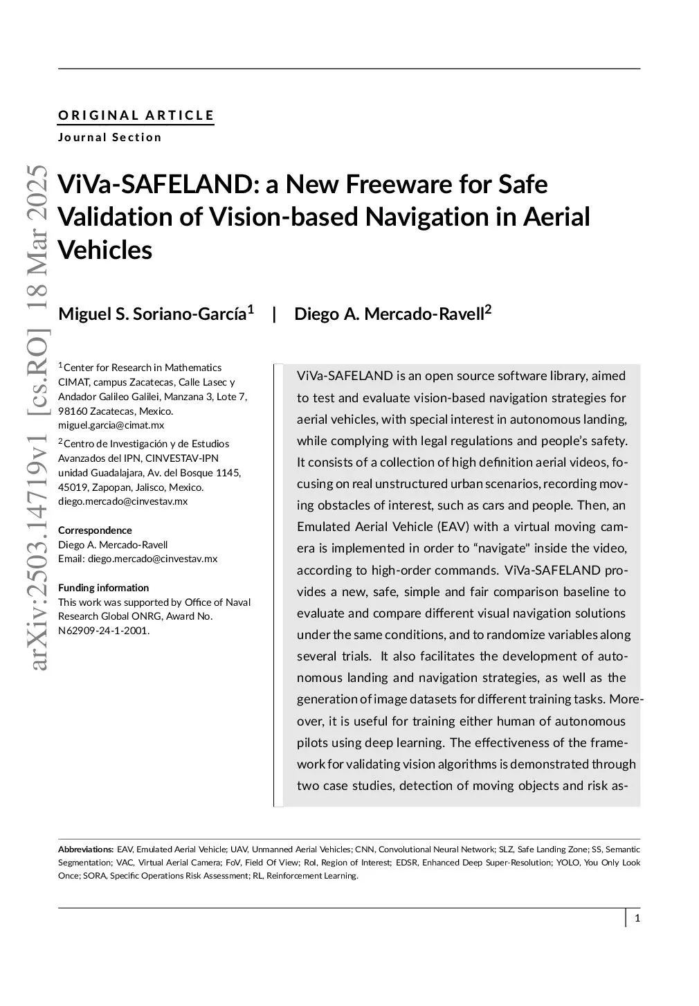 ViVa-SAFELAND: a New Freeware for Safe Validation of Vision-based Navigation in Aerial Vehicles