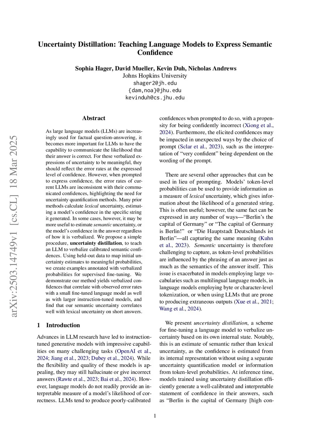 As large language models (LLMs) are increasingly used for factual question-answering, it becomes more important for LLMs to have the capability to communicate the likelihood that their answer is correct. For these verbalized expressions of uncertainty to be meaningful, they should reflect the error rates at the expressed level of confidence. However, when prompted to express confidence, the error rates of current LLMs are inconsistent with their communicated confidences, highlighting the need for uncertainty quantification methods. Many prior methods calculate lexical uncertainty, estimating a model's confidence in the specific string it generated. In some cases, however, it may be more useful to estimate semantic uncertainty, or the model's confidence in the answer regardless of how it is verbalized. We propose a simple procedure, uncertainty distillation, to teach an LLM to verbalize calibrated semantic confidences. Using held-out data to map initial uncertainty estimates to meaningful probabilities, we create examples annotated with verbalized probabilities for supervised fine-tuning. We find that our method yields verbalized confidences that correlate well with observed error rates, even when compared to strong baselines, some of which are more than twenty times slower at inference time. Additionally, we demonstrate that our method can be applied to black-box models that allow API-based fine-tuning, resulting in estimates of uncertainty that are both more effective and more efficient than any of our baselines.