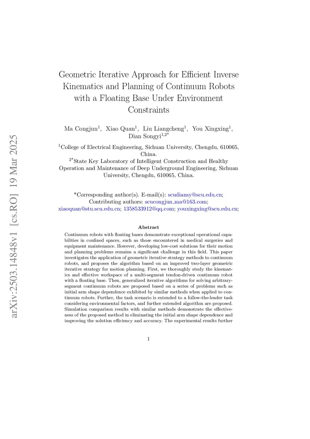 Geometric Iterative Approach for Efficient Inverse Kinematics and Planning of Continuum Robots with a Floating Base Under Environment Constraints