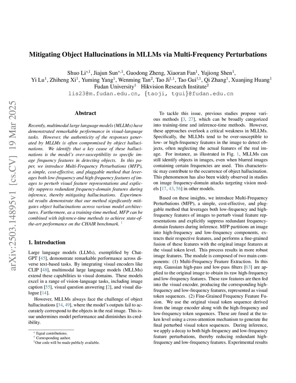 Mitigating Object Hallucinations in MLLMs via Multi-Frequency Perturbations