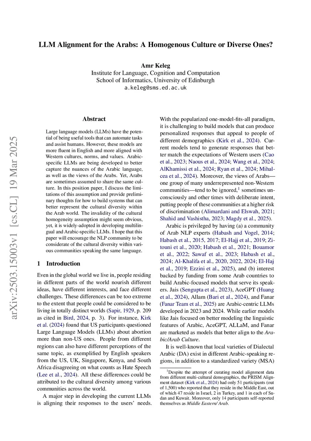 Large language models (LLMs) have the potential of being useful tools that can automate tasks and assist humans. However, these models are more fluent in English and more aligned with Western cultures, norms, and values. Arabic-specific LLMs are being developed to better capture the nuances of the Arabic language, as well as the views of the Arabs. Yet, Arabs are sometimes assumed to share the same culture. In this position paper, I discuss the limitations of this assumption and provide preliminary thoughts for how to build systems that can better represent the cultural diversity within the Arab world. The invalidity of the cultural homogeneity assumption might seem obvious, yet, it is widely adopted in developing multilingual and Arabic-specific LLMs. I hope that this paper will encourage the NLP community to be considerate of the cultural diversity within various communities speaking the same language.