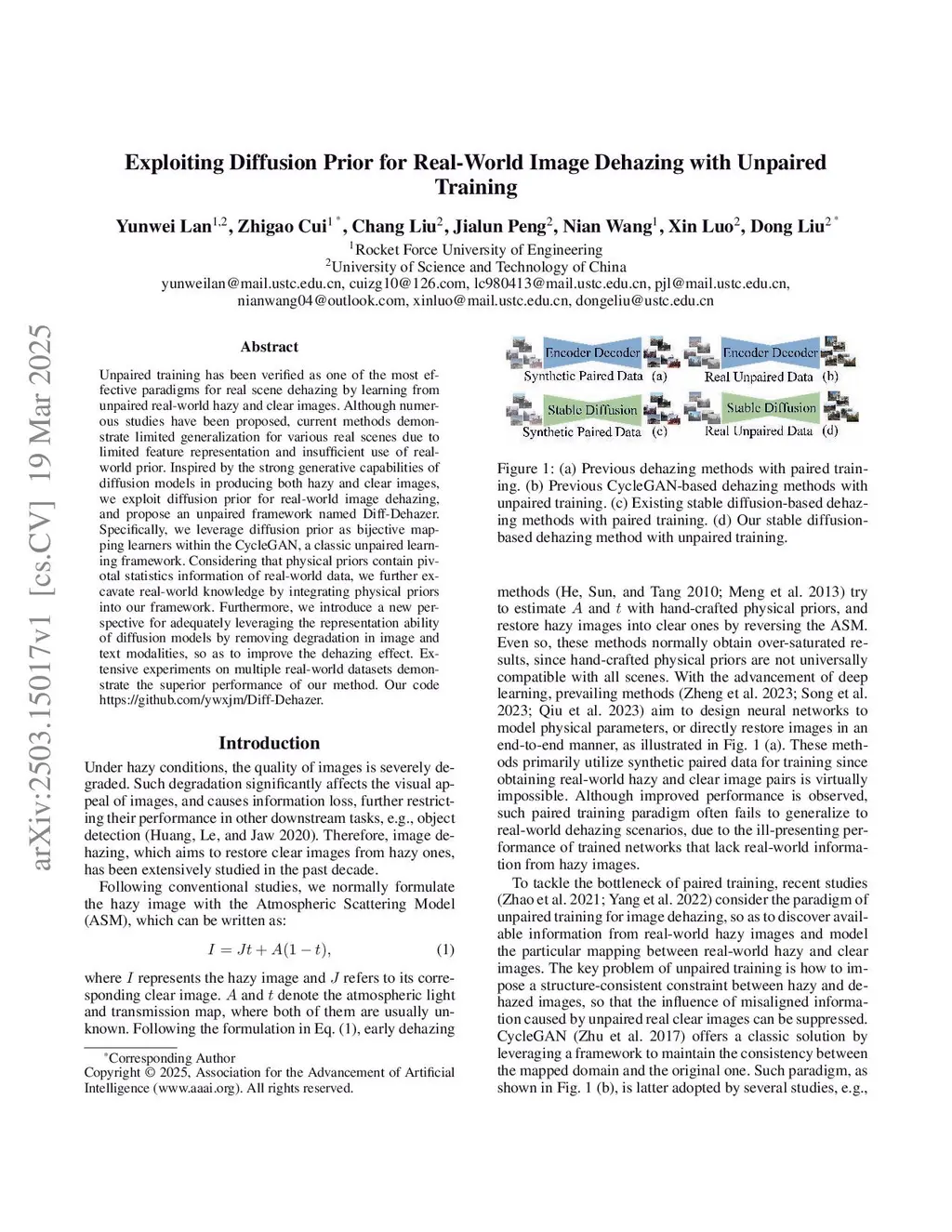 Exploiting Diffusion Prior for Real-World Image Dehazing with Unpaired Training