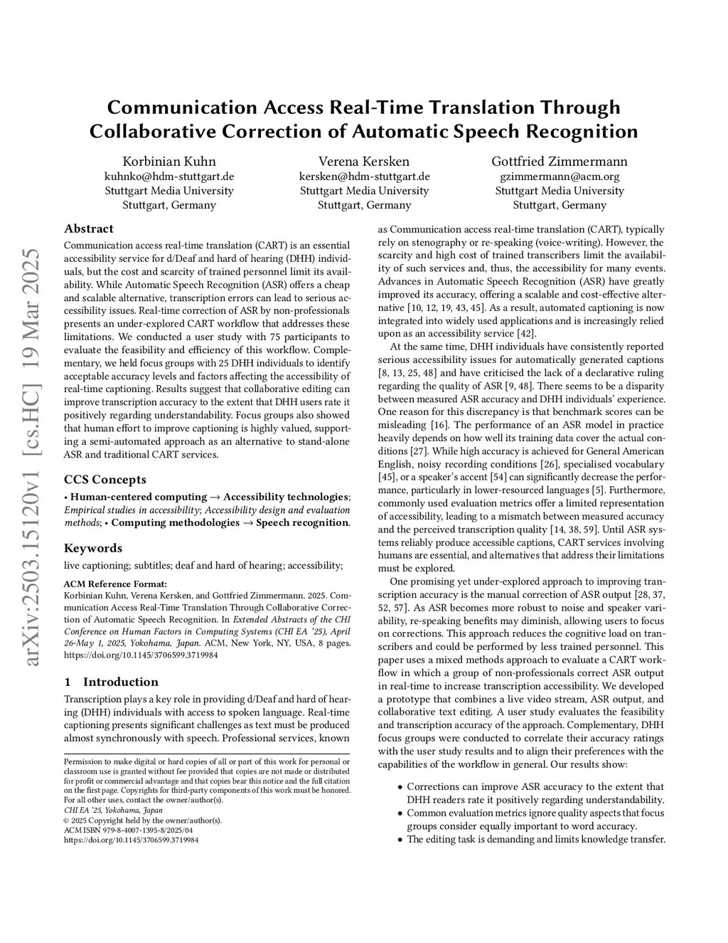 Communication Access Real-Time Translation Through Collaborative Correction of Automatic Speech Recognition