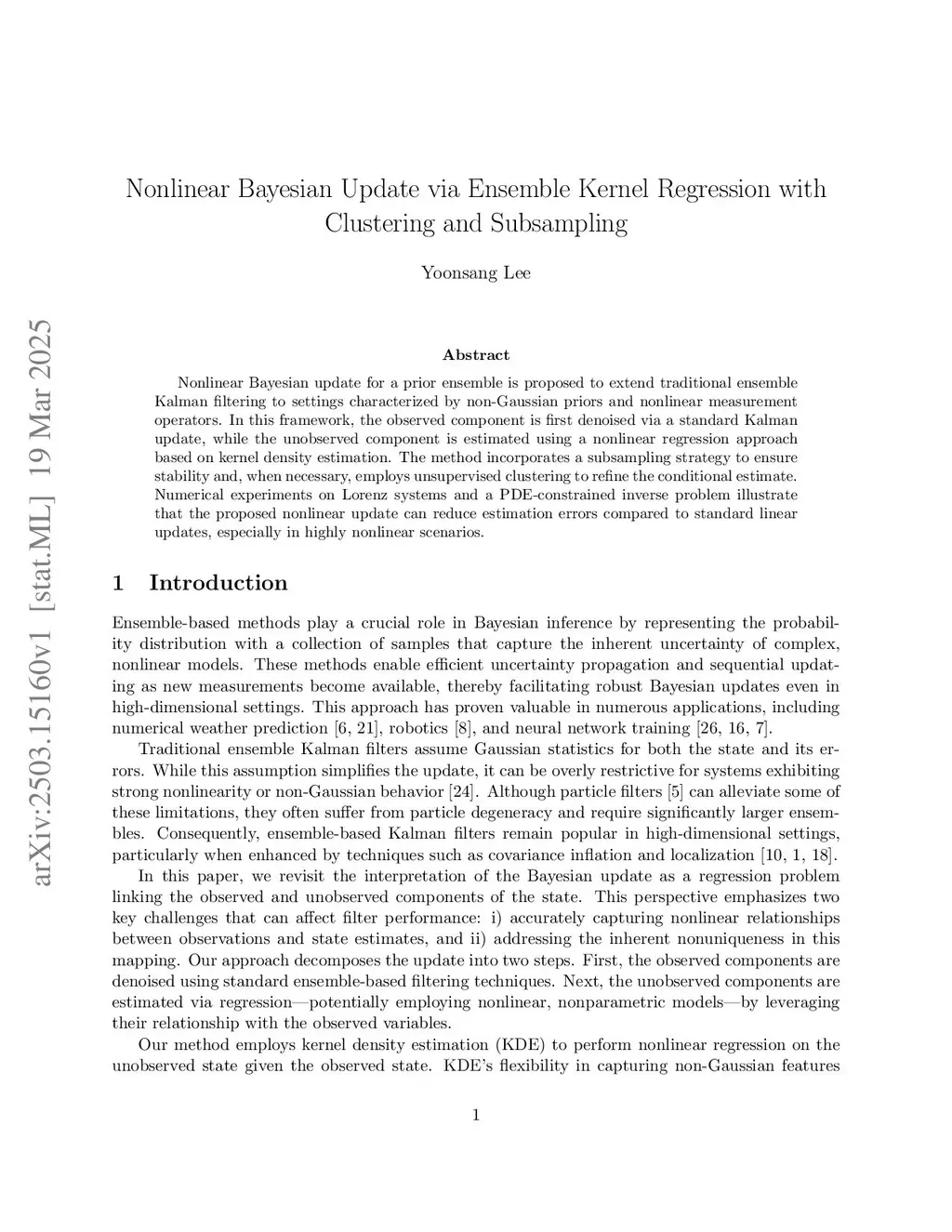 Nonlinear Bayesian update for a prior ensemble is proposed to extend traditional ensemble Kalman filtering to settings characterized by non-Gaussian priors and nonlinear measurement operators. In this framework, the observed component is first denoised via a standard Kalman update, while the unobserved component is estimated using a nonlinear regression approach based on kernel density estimation. The method incorporates a subsampling strategy to ensure stability and, when necessary, employs unsupervised clustering to refine the conditional estimate. Numerical experiments on Lorenz systems and a PDE-constrained inverse problem illustrate that the proposed nonlinear update can reduce estimation errors compared to standard linear updates, especially in highly nonlinear scenarios.
