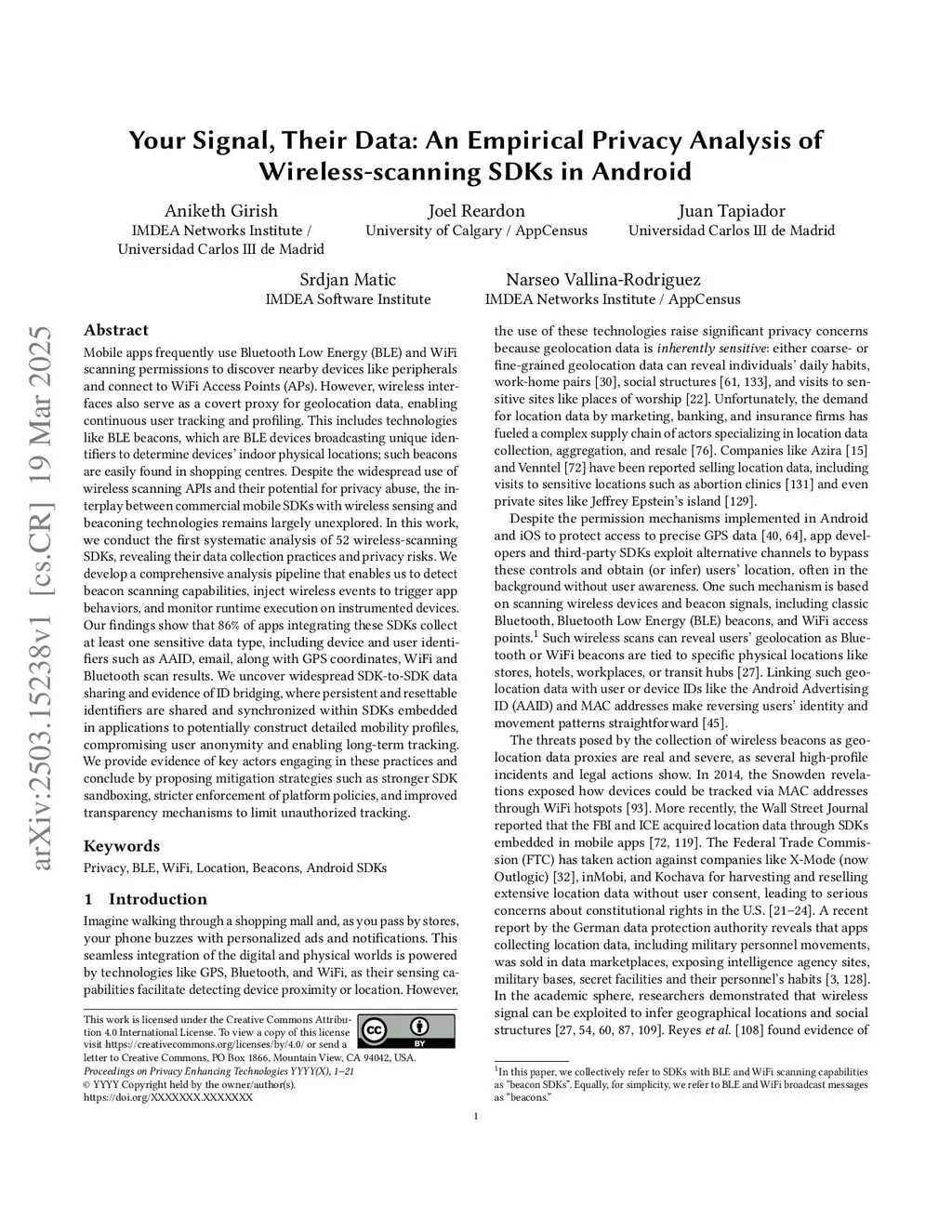 Your Signal, Their Data: An Empirical Privacy Analysis of Wireless-scanning SDKs in Android