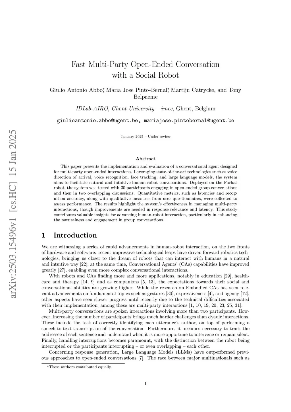 Fast Multi-Party Open-Ended Conversation with a Social Robot