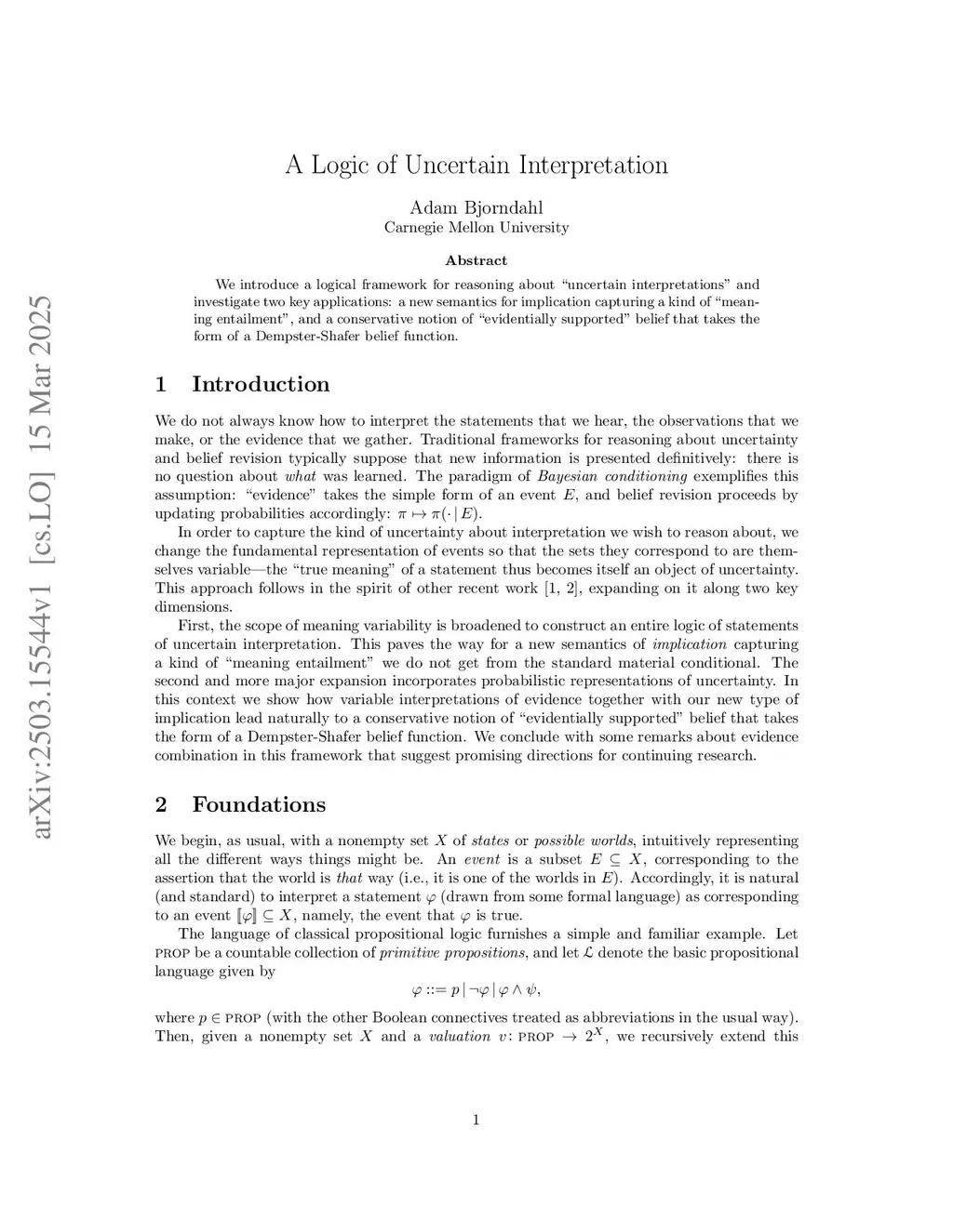 We introduce a logical framework for reasoning about "uncertain interpretations" and investigate two key applications: a new semantics for implication capturing a kind of "meaning entailment", and a conservative notion of "evidentially supported" belief that takes the form of a Dempster-Shafer belief function.