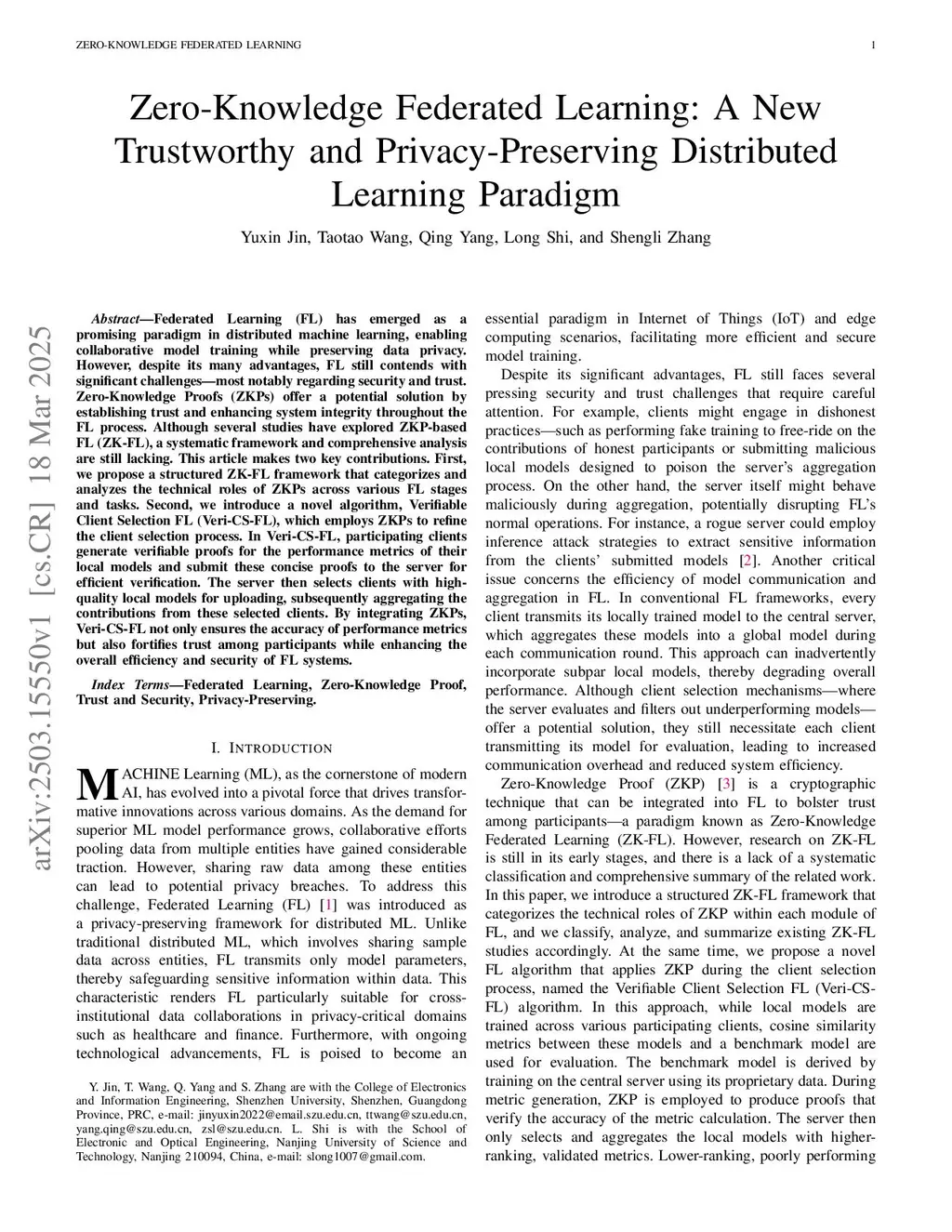Zero-Knowledge Federated Learning: A New Trustworthy and Privacy-Preserving Distributed Learning Paradigm