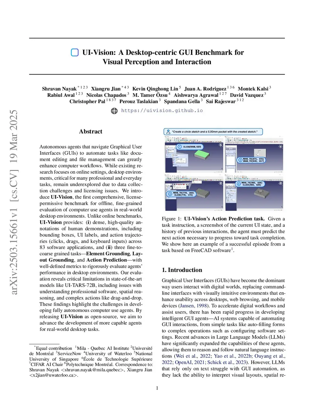 UI-Vision: A Desktop-centric GUI Benchmark for Visual Perception and Interaction