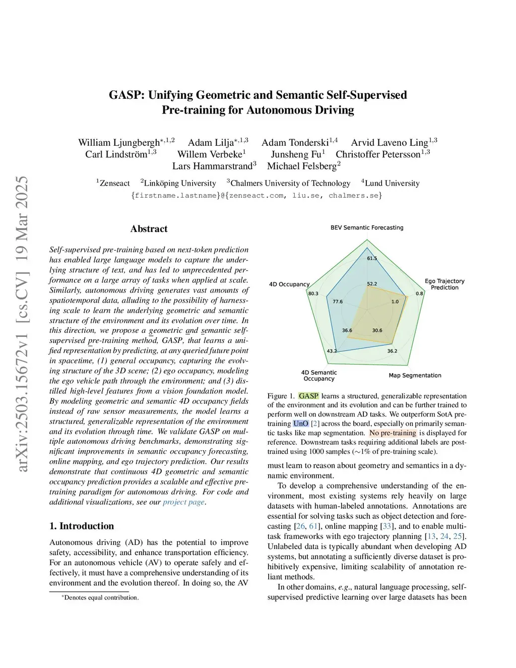 GASP: Unifying Geometric and Semantic Self-Supervised Pre-training for Autonomous Driving