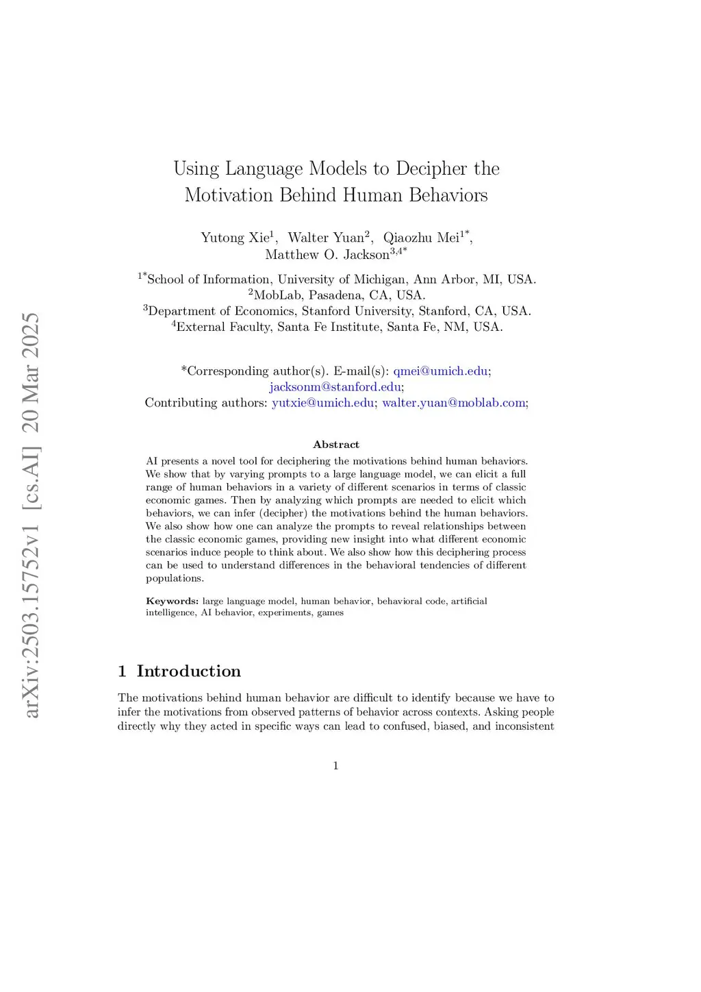By varying prompts to a large language model, we can elicit the full range of human behaviors in a variety of different scenarios in classic economic games. By analyzing which prompts elicit which behaviors, we can categorize and compare different strategic situations, which can also help provide insight into what different economic scenarios induce people to think about. We discuss how this provides a first step towards a non-standard method of inferring (deciphering) the motivations behind the human behaviors. We also show how this deciphering process can be used to categorize differences in the behavioral tendencies of different populations.