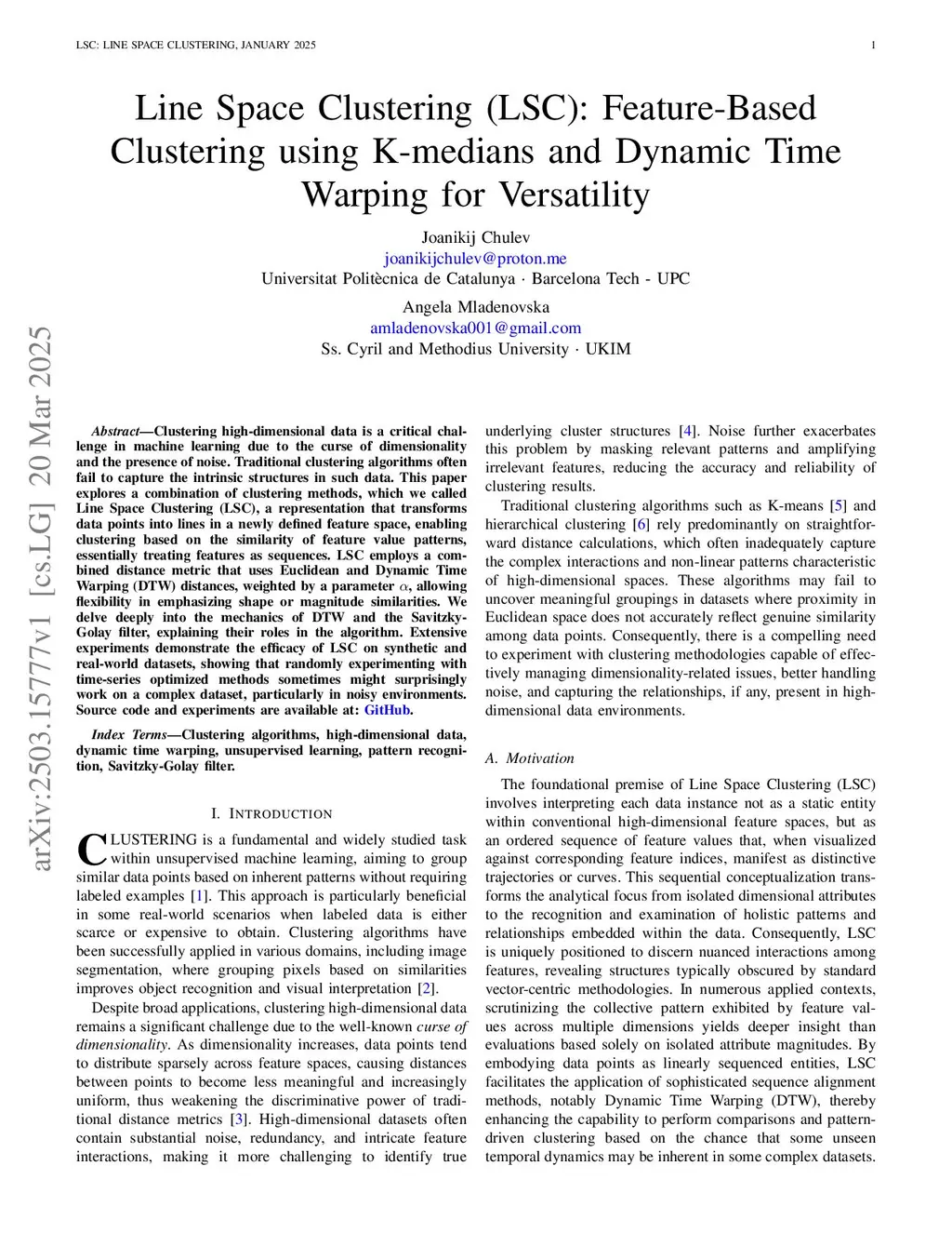 Line Space Clustering (LSC): Feature-Based Clustering using K-medians and Dynamic Time Warping for Versatility