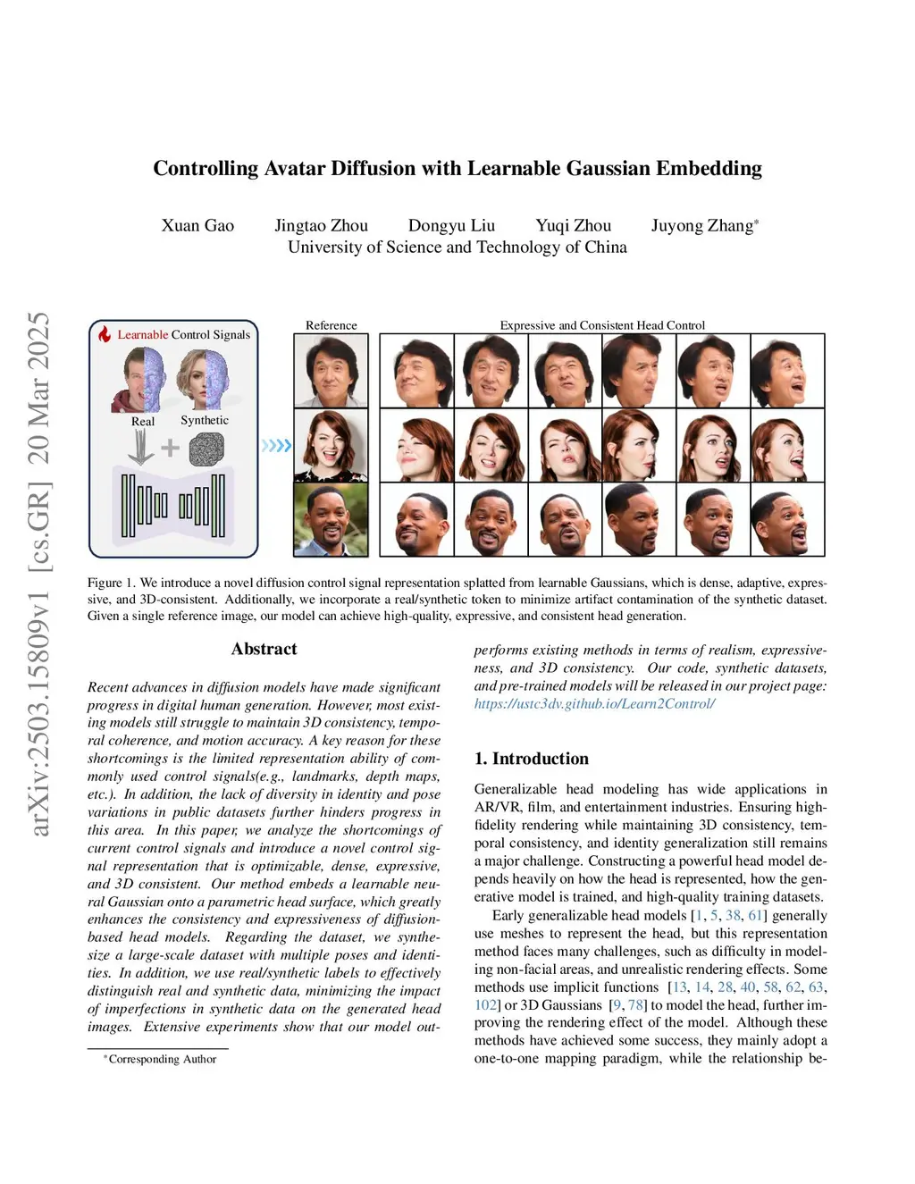 Controlling Avatar Diffusion with Learnable Gaussian Embedding