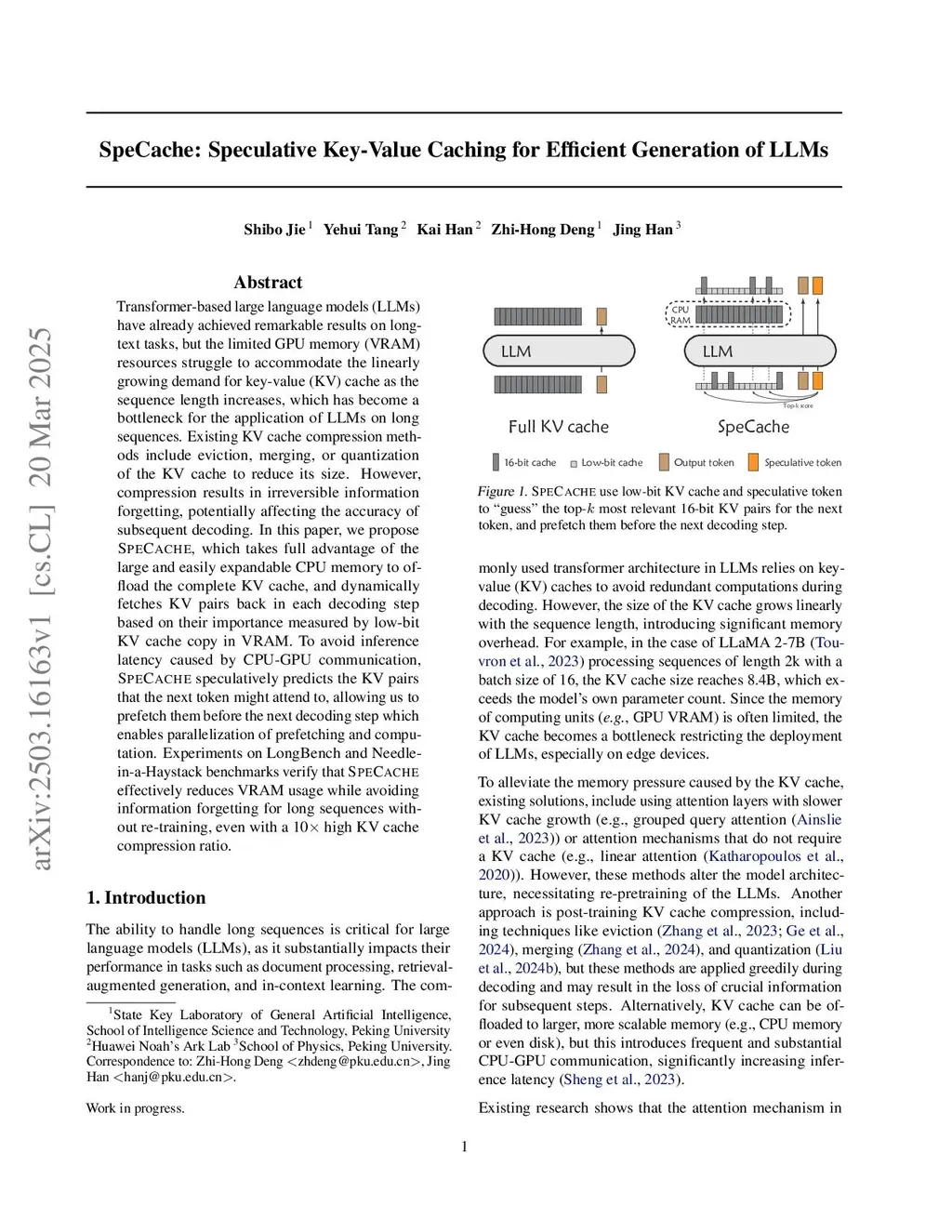 SpeCache: Speculative Key-Value Caching for Efficient Generation of LLMs