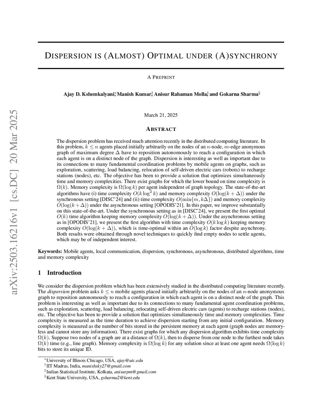 The dispersion problem has received much attention recently in the distributed computing literature. In this problem, agents placed initially arbitrarily on the nodes of an -node, -edge anonymous graph of maximum degree have to reposition autonomously to reach a configuration in which each agent is on a distinct node of the graph. Dispersion is interesting as well as important due to its connections to many fundamental coordination problems by mobile agents on graphs, such as exploration, scattering, load balancing, relocation of self-driven electric cars (robots) to recharge stations (nodes), etc. The objective has been to provide a solution that optimizes simultaneously time and memory complexities. There exist graphs for which the lower bound on time complexity is . Memory complexity is per agent independent of graph topology. The state-of-the-art algorithms have (i) time complexity and memory complexity under the synchronous setting [DISC'24] and (ii) time complexity and memory complexity under the asynchronous setting [OPODIS'21]. In this paper, we improve substantially on this state-of-the-art. Under the synchronous setting as in [DISC'24], we present the first optimal time algorithm keeping memory complexity . Under the asynchronous setting as in [OPODIS'21], we present the first algorithm with time complexity keeping memory complexity , which is time-optimal within an factor despite asynchrony. Both results were obtained through novel techniques to quickly find empty nodes to settle agents, which may be of independent interest.
