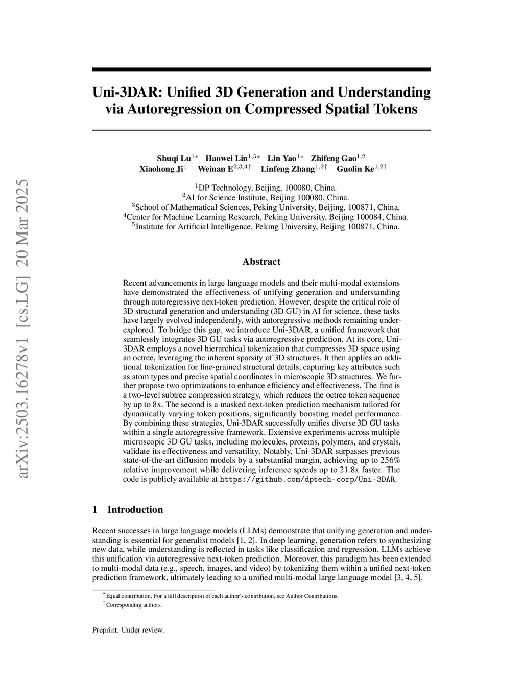 3D structure modeling is essential across scales, enabling applications from fluid simulation and 3D reconstruction to protein folding and molecular docking. Yet, despite shared 3D spatial patterns, current approaches remain fragmented, with models narrowly specialized for specific domains and unable to generalize across tasks or scales. We propose Uni-3DAR, a unified autoregressive framework for cross-scale 3D generation and understanding. At its core is a coarse-to-fine tokenizer based on octree data structures, which compresses diverse 3D structures into compact 1D token sequences. We further propose a two-level subtree compression strategy, which reduces the octree token sequence by up to 8x. To address the challenge of dynamically varying token positions introduced by compression, we introduce a masked next-token prediction strategy that ensures accurate positional modeling, significantly boosting model performance. Extensive experiments across multiple 3D generation and understanding tasks, including small molecules, proteins, polymers, crystals, and macroscopic 3D objects, validate its effectiveness and versatility. Notably, Uni-3DAR surpasses previous state-of-the-art diffusion models by a substantial margin, achieving up to 256\% relative improvement while delivering inference speeds up to 21.8x faster.