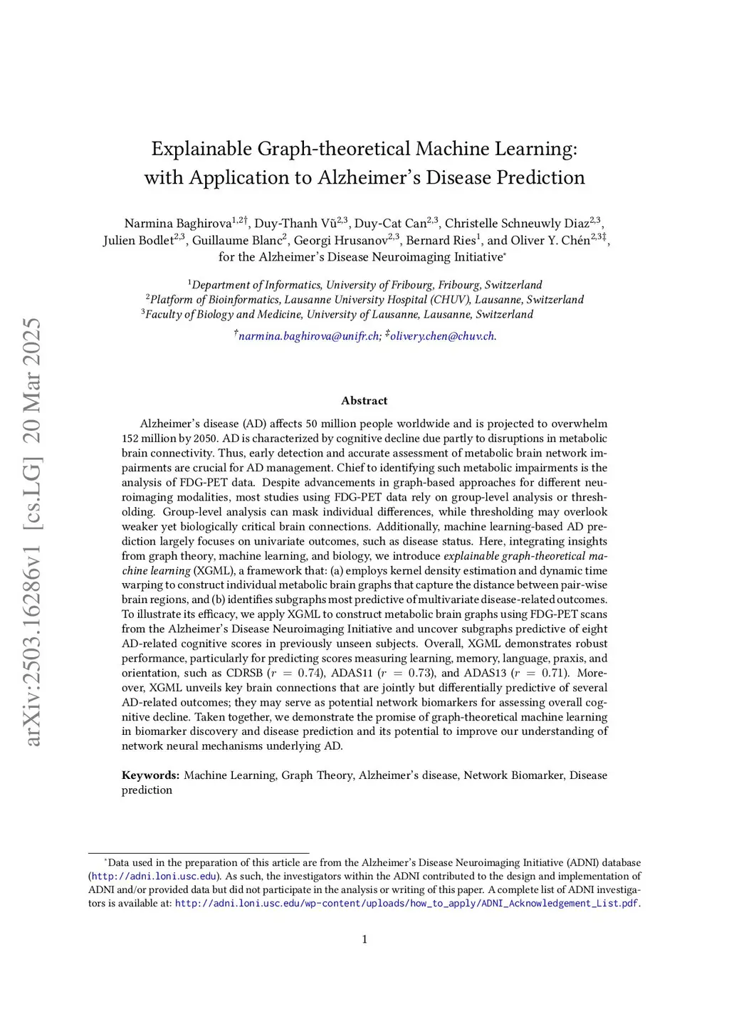 Explainable Graph-theoretical Machine Learning: with Application to Alzheimer's Disease Prediction