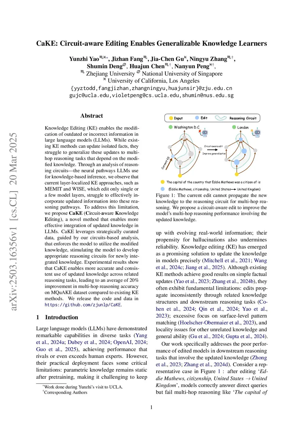 CaKE: Circuit-aware Editing Enables Generalizable Knowledge Learners