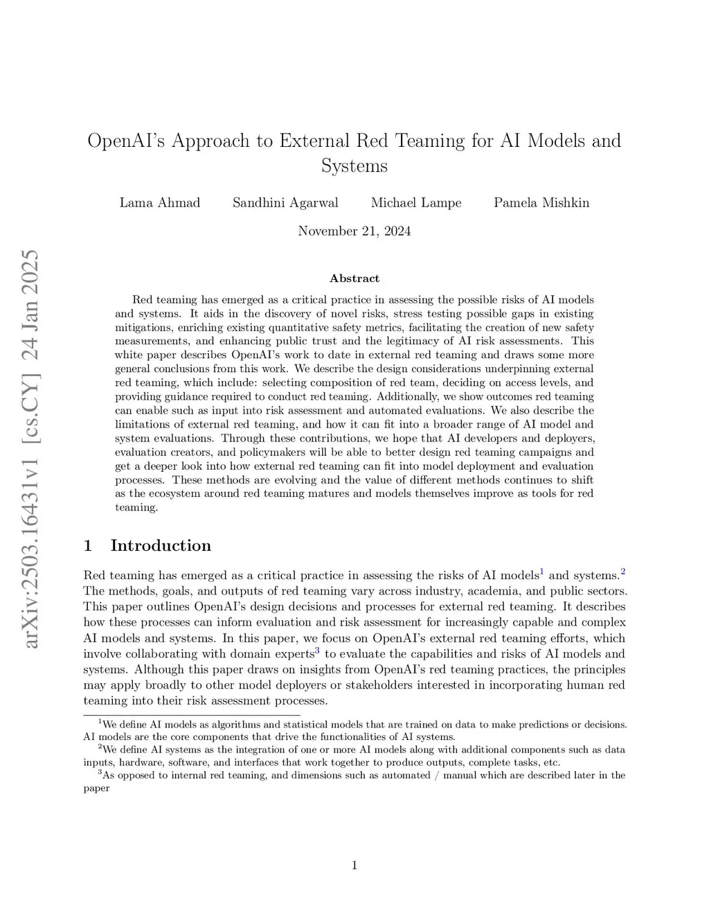 OpenAI's Approach to External Red Teaming for AI Models and Systems