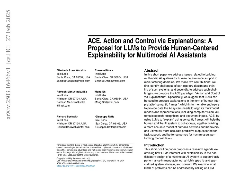 ACE, Action and Control via Explanations: A Proposal for LLMs to Provide Human-Centered Explainability for Multimodal AI Assistants