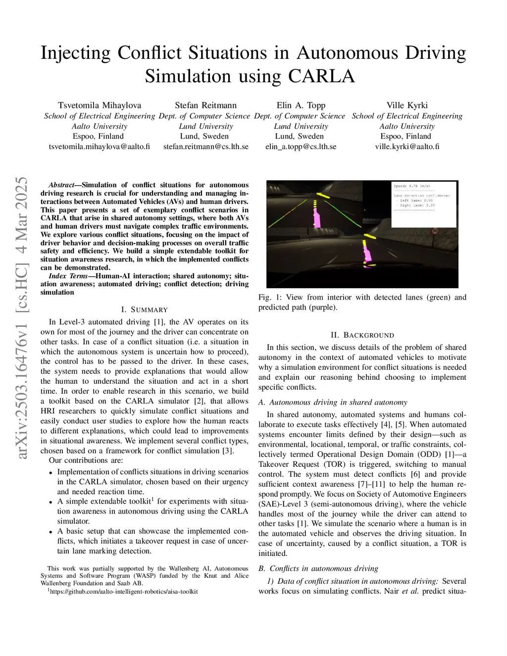 Injecting Conflict Situations in Autonomous Driving Simulation using CARLA