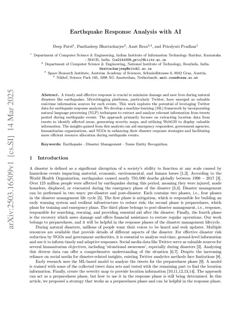 A timely and effective response is crucial to minimize damage and save lives during natural disasters like earthquakes. Microblogging platforms, particularly Twitter, have emerged as valuable real-time information sources for such events. This work explores the potential of leveraging Twitter data for earthquake response analysis. We develop a machine learning (ML) framework by incorporating natural language processing (NLP) techniques to extract and analyze relevant information from tweets posted during earthquake events. The approach primarily focuses on extracting location data from tweets to identify affected areas, generating severity maps, and utilizing WebGIS to display valuable information. The insights gained from this analysis can aid emergency responders, government agencies, humanitarian organizations, and NGOs in enhancing their disaster response strategies and facilitating more efficient resource allocation during earthquake events.