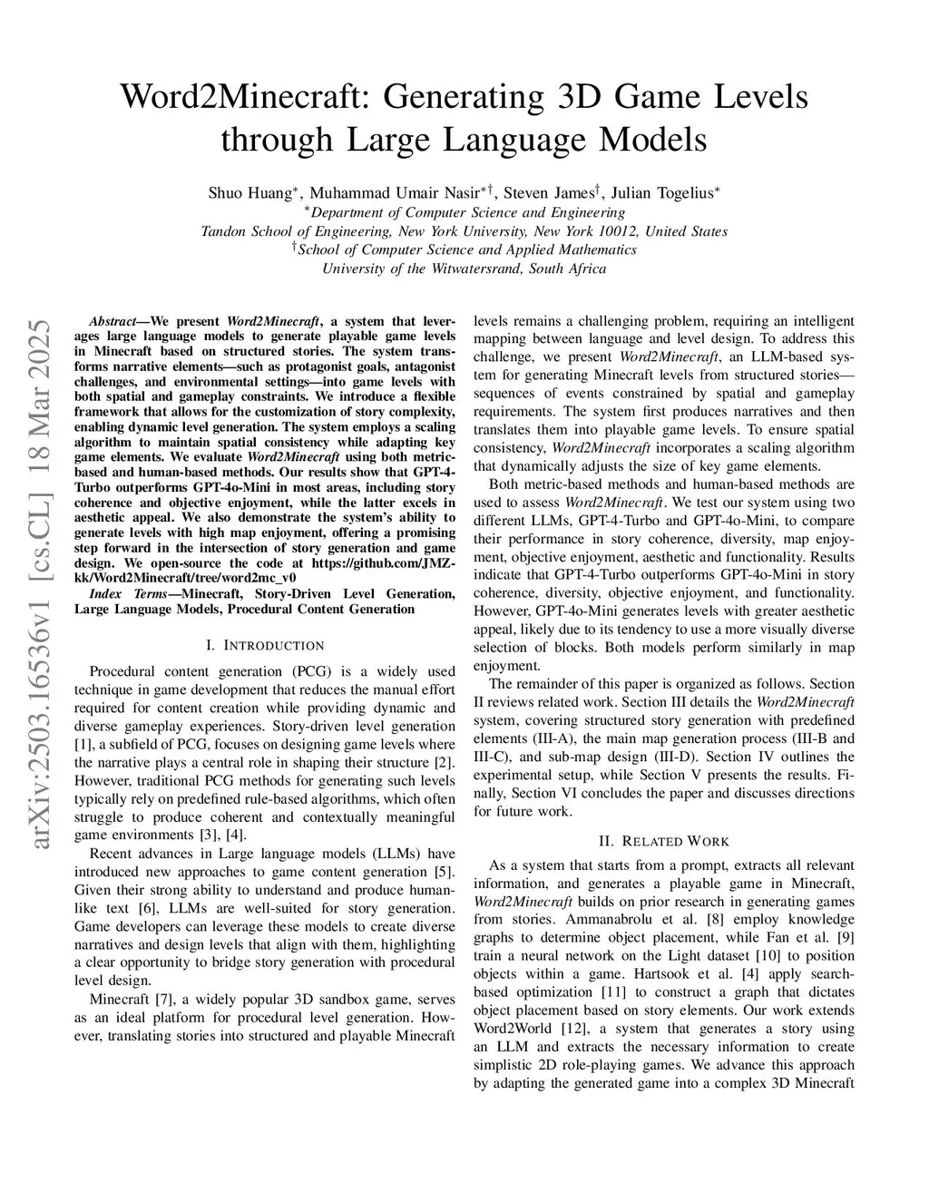 Word2Minecraft: Generating 3D Game Levels through Large Language Models