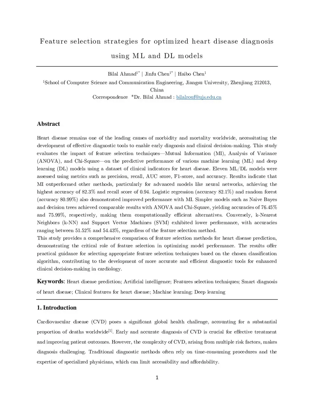 Feature selection strategies for optimized heart disease diagnosis using ML and DL models