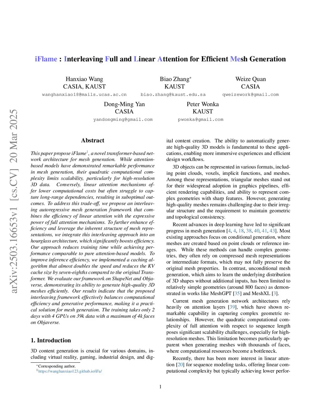 iFlame: Interleaving Full and Linear Attention for Efficient Mesh Generation