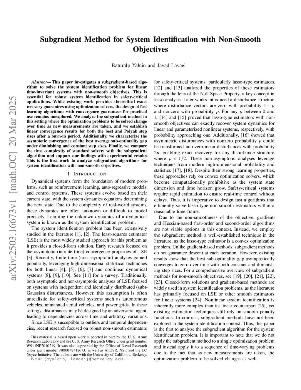 Subgradient Method for System Identification with Non-Smooth Objectives