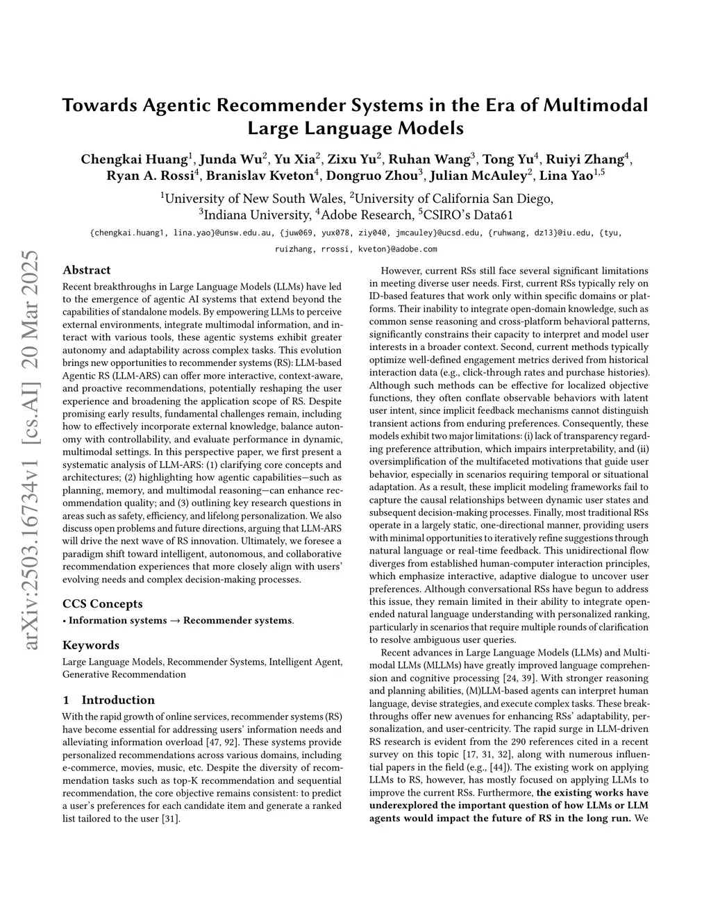 Towards Agentic Recommender Systems in the Era of Multimodal Large Language Models