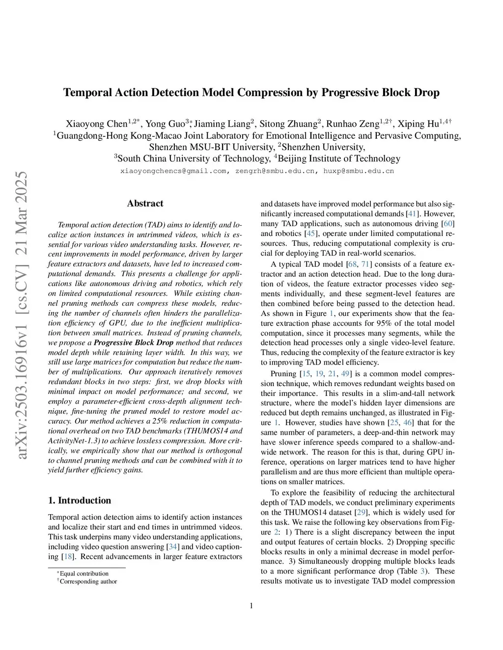 Temporal Action Detection Model Compression by Progressive Block Drop