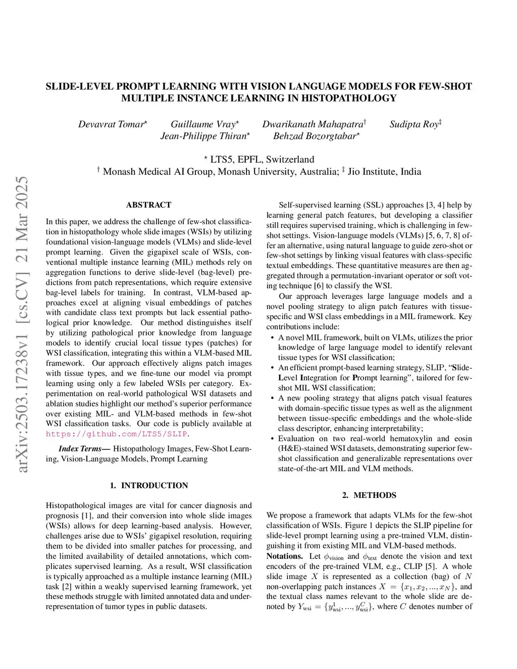 Slide-Level Prompt Learning with Vision Language Models for Few-Shot Multiple Instance Learning in Histopathology