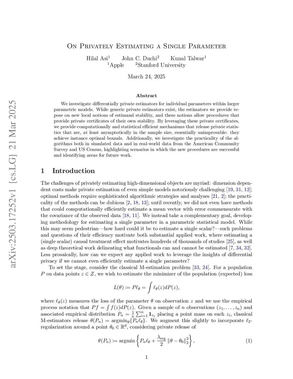 On Privately Estimating a Single Parameter