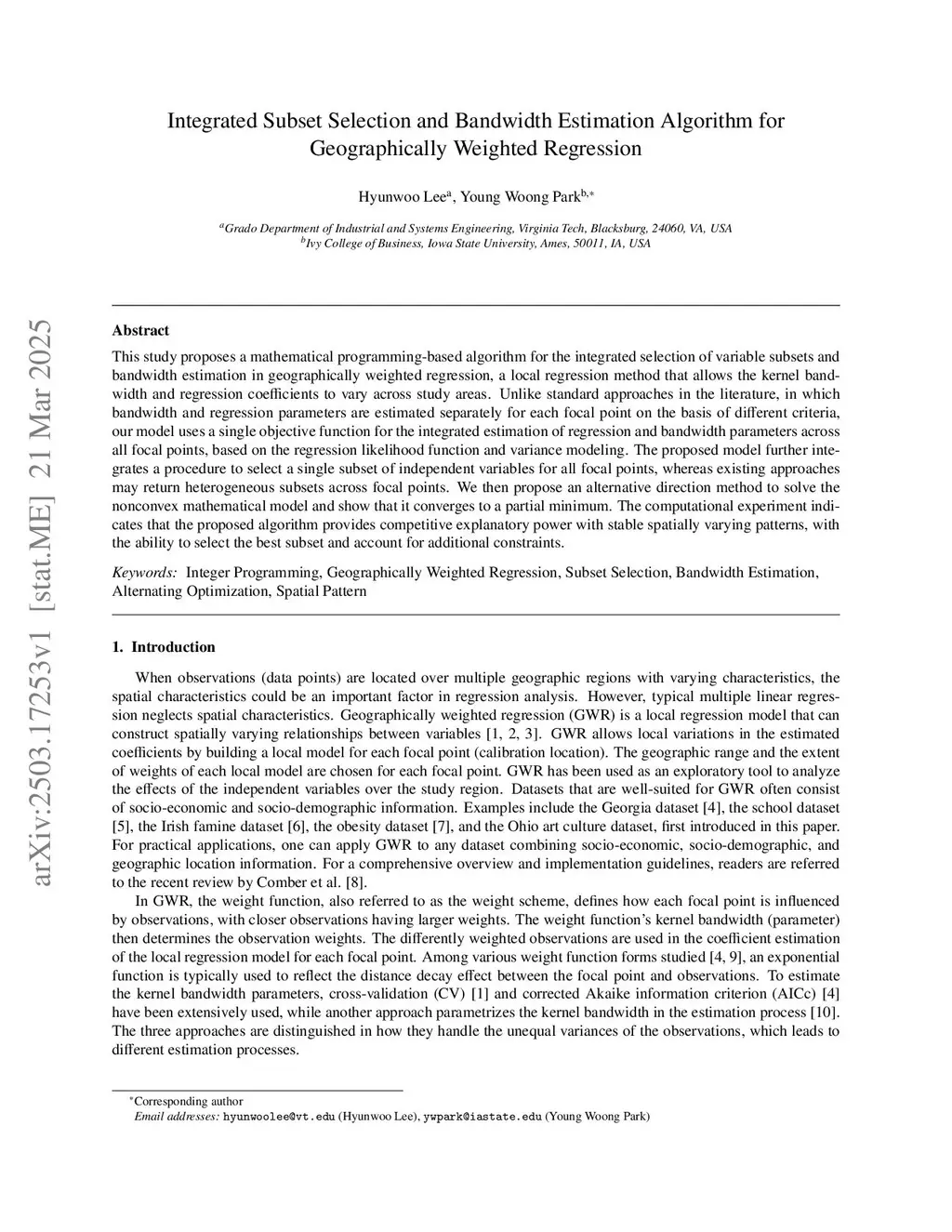 Integrated Subset Selection and Bandwidth Estimation Algorithm for Geographically Weighted Regression