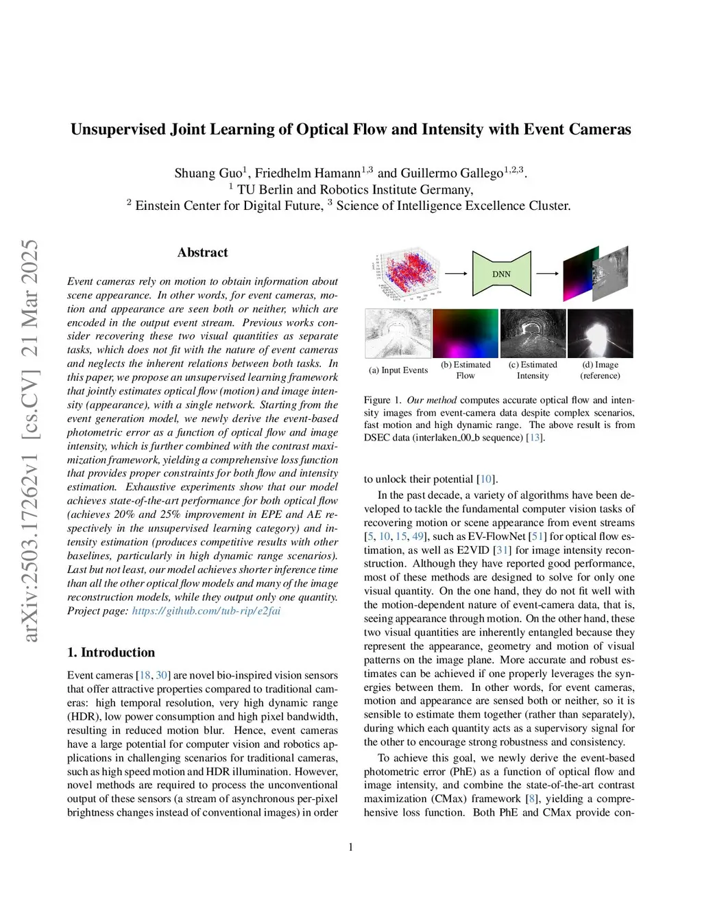 Unsupervised Joint Learning of Optical Flow and Intensity with Event Cameras