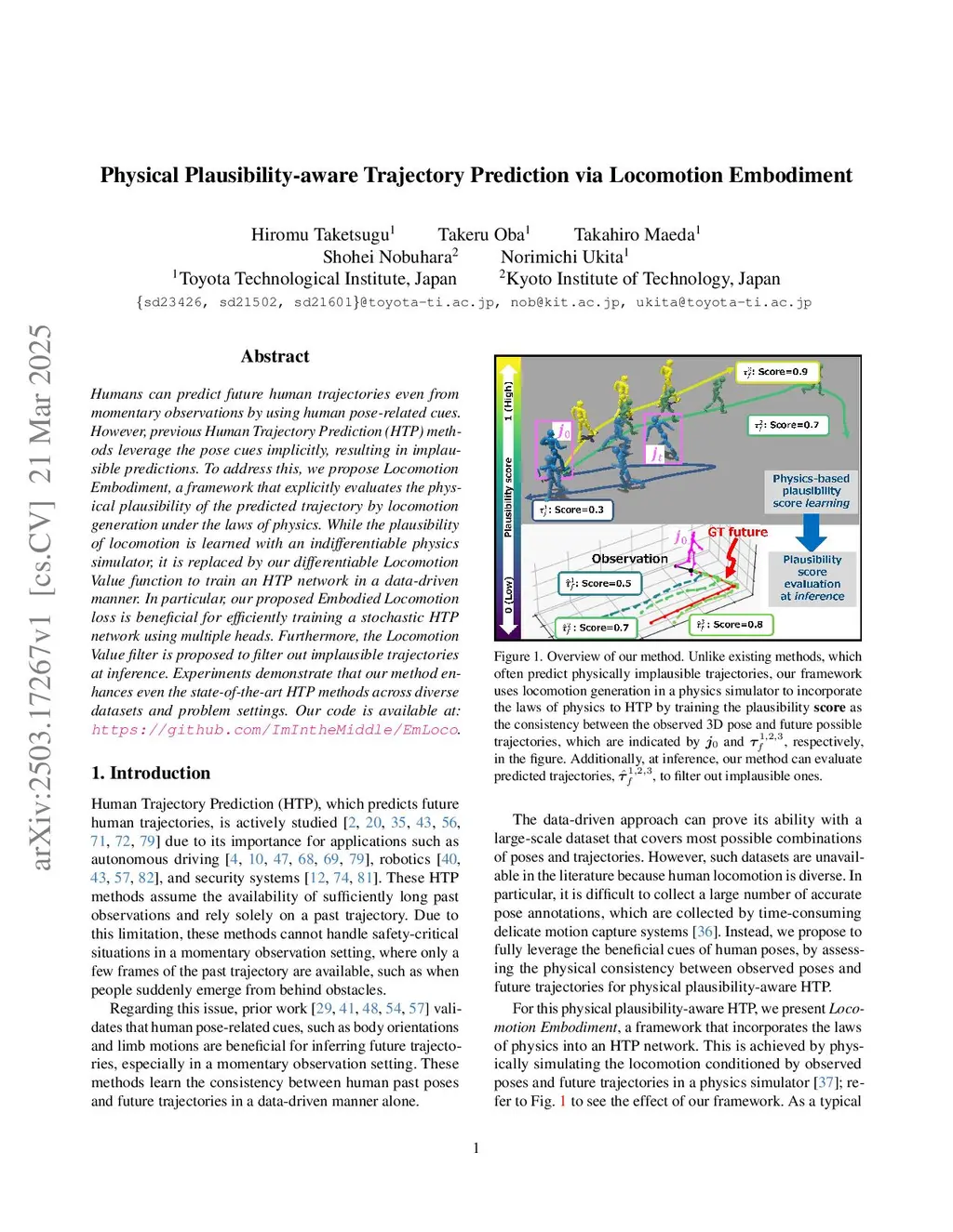 Physical Plausibility-aware Trajectory Prediction via Locomotion Embodiment