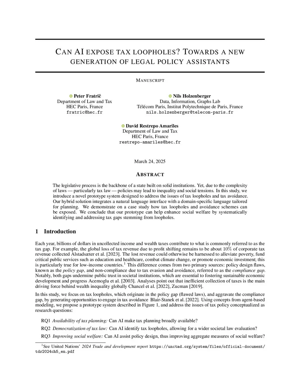 Can AI expose tax loopholes? Towards a new generation of legal policy assistants