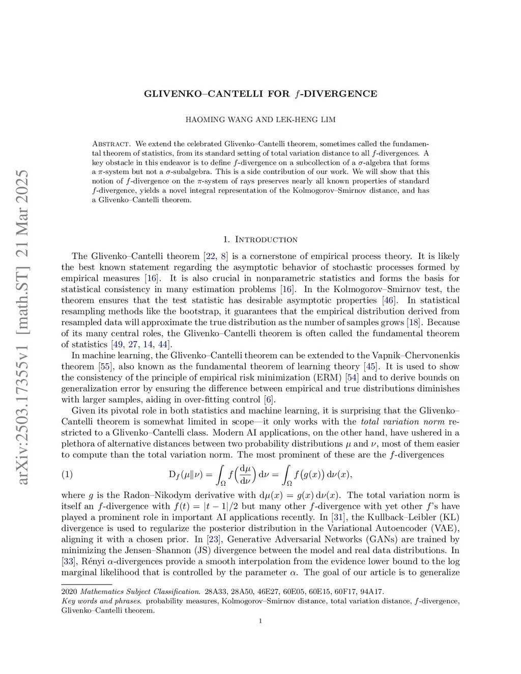 We extend the celebrated Glivenko-Cantelli theorem, sometimes called the fundamental theorem of statistics, from its standard setting of total variation distance to all -divergences. A key obstacle in this endeavor is to define -divergence on a subcollection of a -algebra that forms a -system but not a -subalgebra. This is a side contribution of our work. We will show that this notion of -divergence on the -system of rays preserves nearly all known properties of standard -divergence, yields a novel integral representation of the Kolmogorov-Smirnov distance, and has a Glivenko-Cantelli theorem. We will also discuss the prospects of a Vapnik-Chervonenkis theory for -divergence.