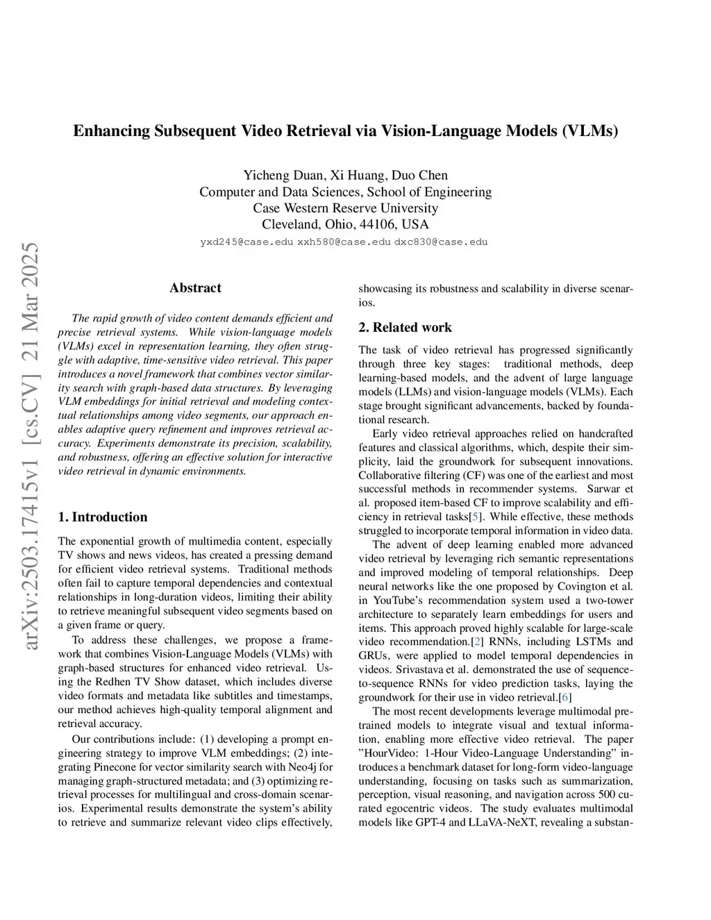 Enhancing Subsequent Video Retrieval via Vision-Language Models (VLMs)