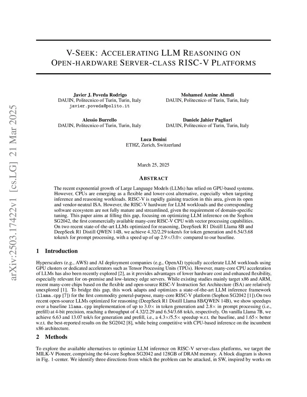 V-Seek: Accelerating LLM Reasoning on Open-hardware Server-class RISC-V Platforms