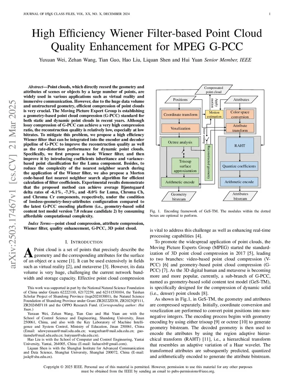 High Efficiency Wiener Filter-based Point Cloud Quality Enhancement for MPEG G-PCC