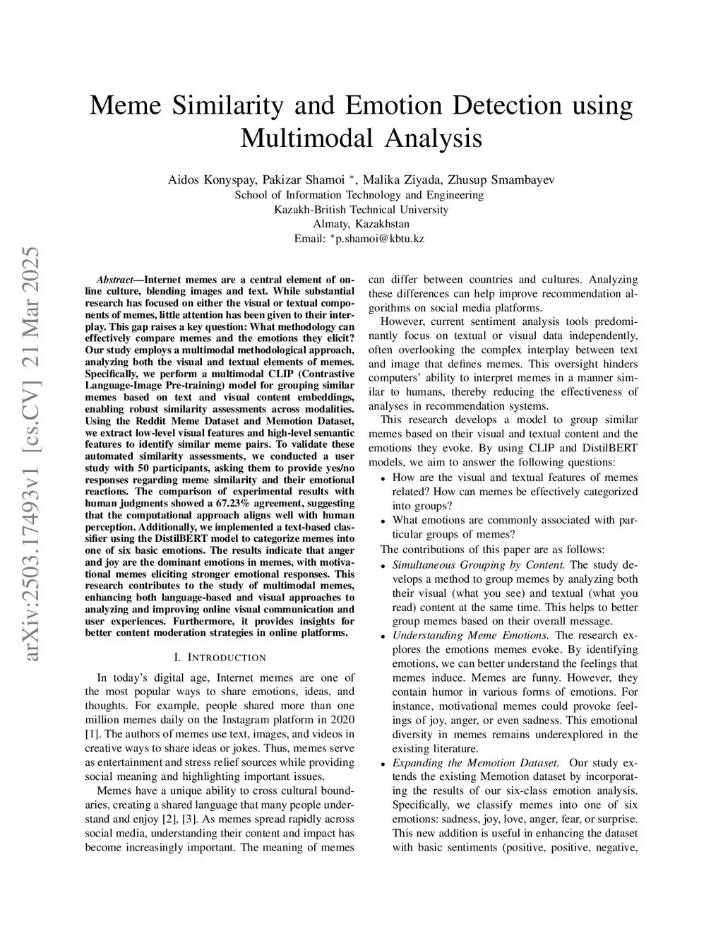 Meme Similarity and Emotion Detection using Multimodal Analysis