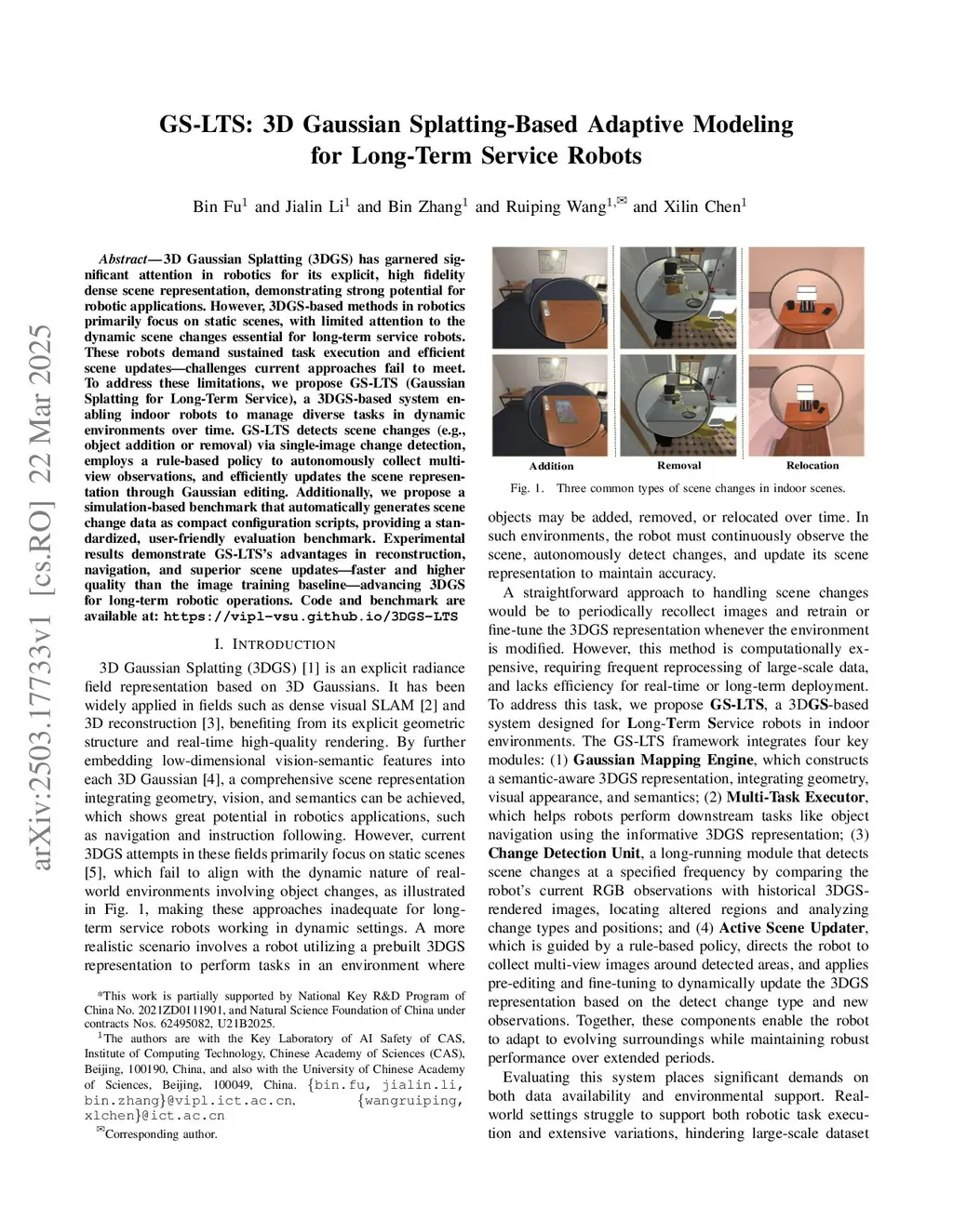 GS-LTS: 3D Gaussian Splatting-Based Adaptive Modeling for Long-Term Service Robots