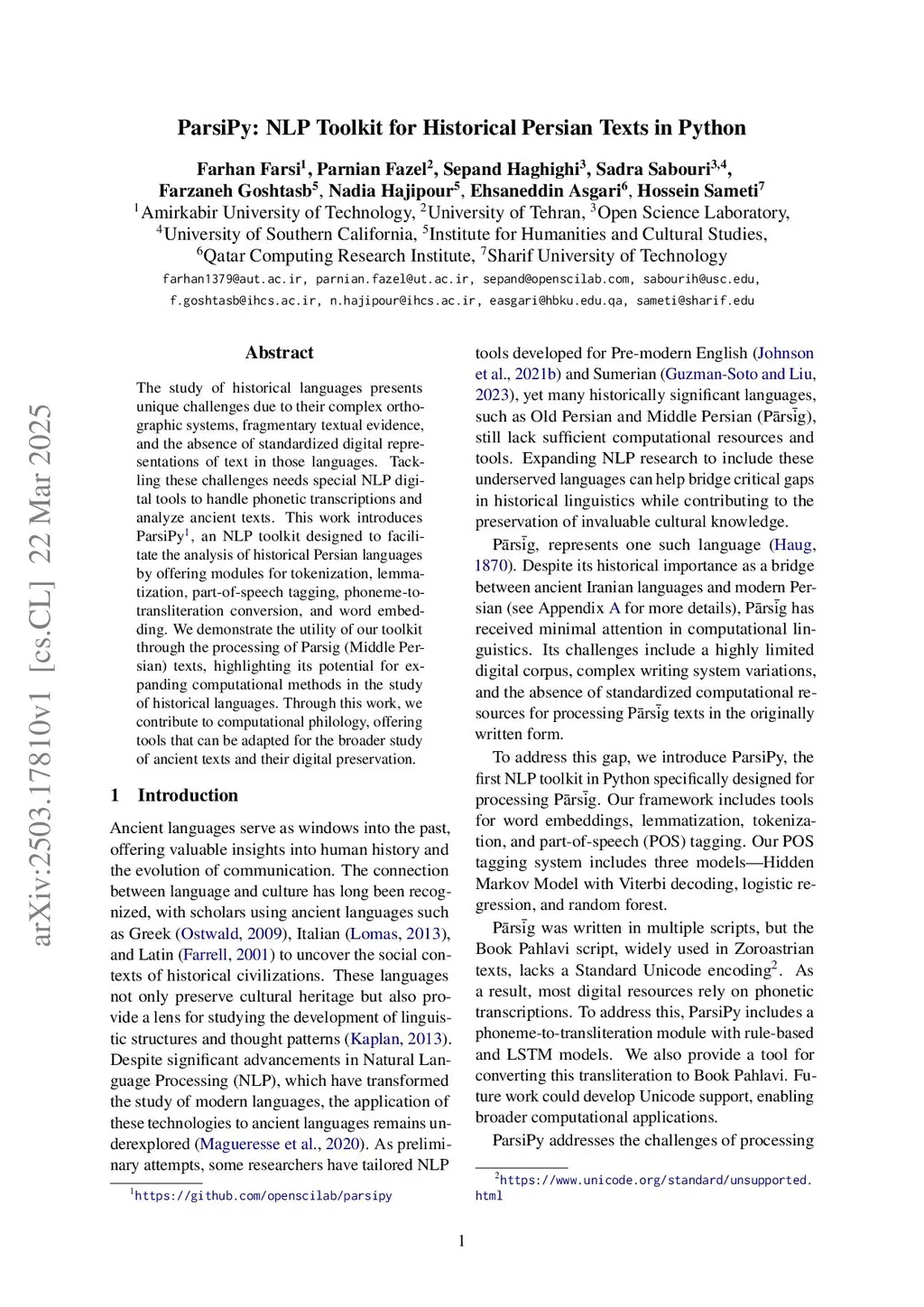 ParsiPy: NLP Toolkit for Historical Persian Texts in Python