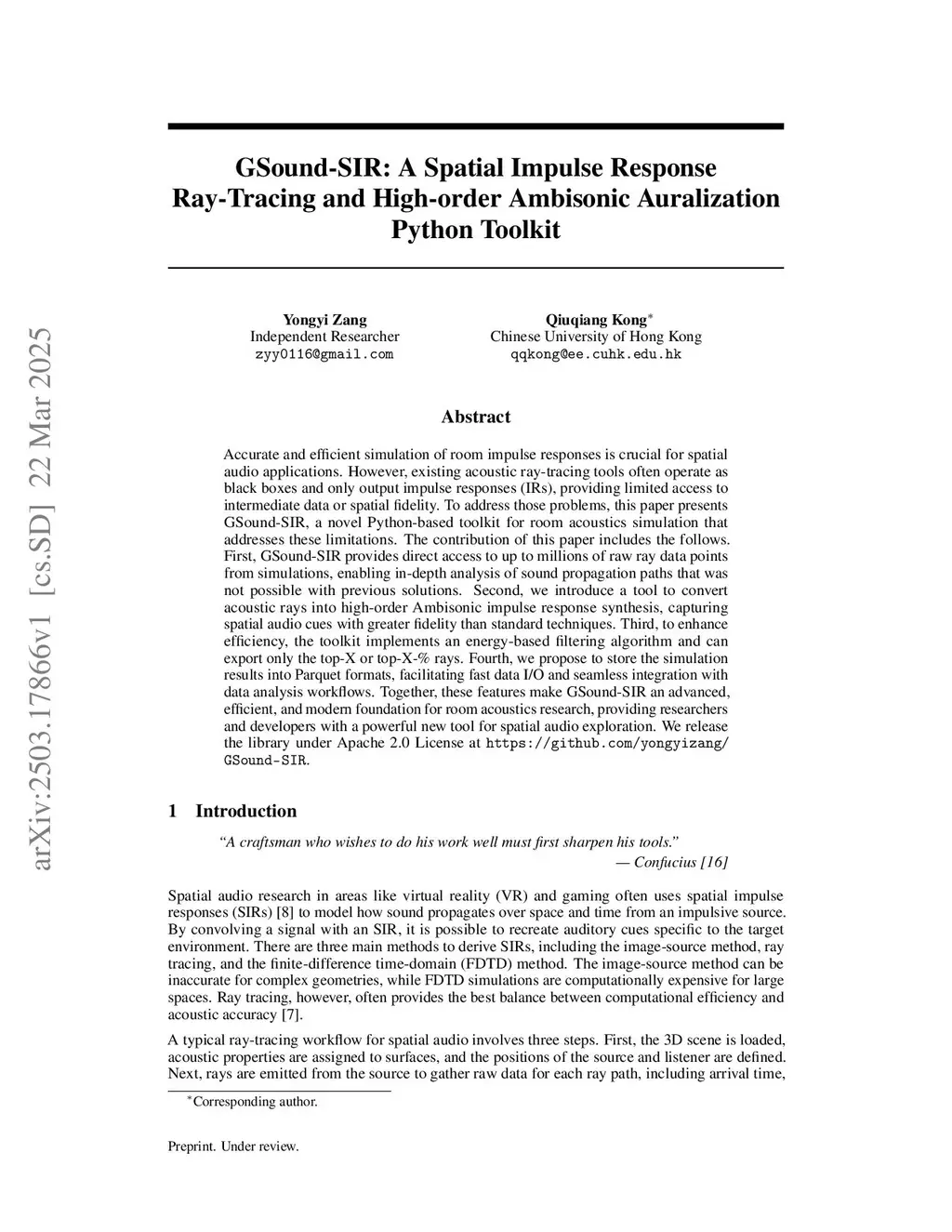 GSound-SIR: A Spatial Impulse Response Ray-Tracing and High-order Ambisonic Auralization Python Toolkit