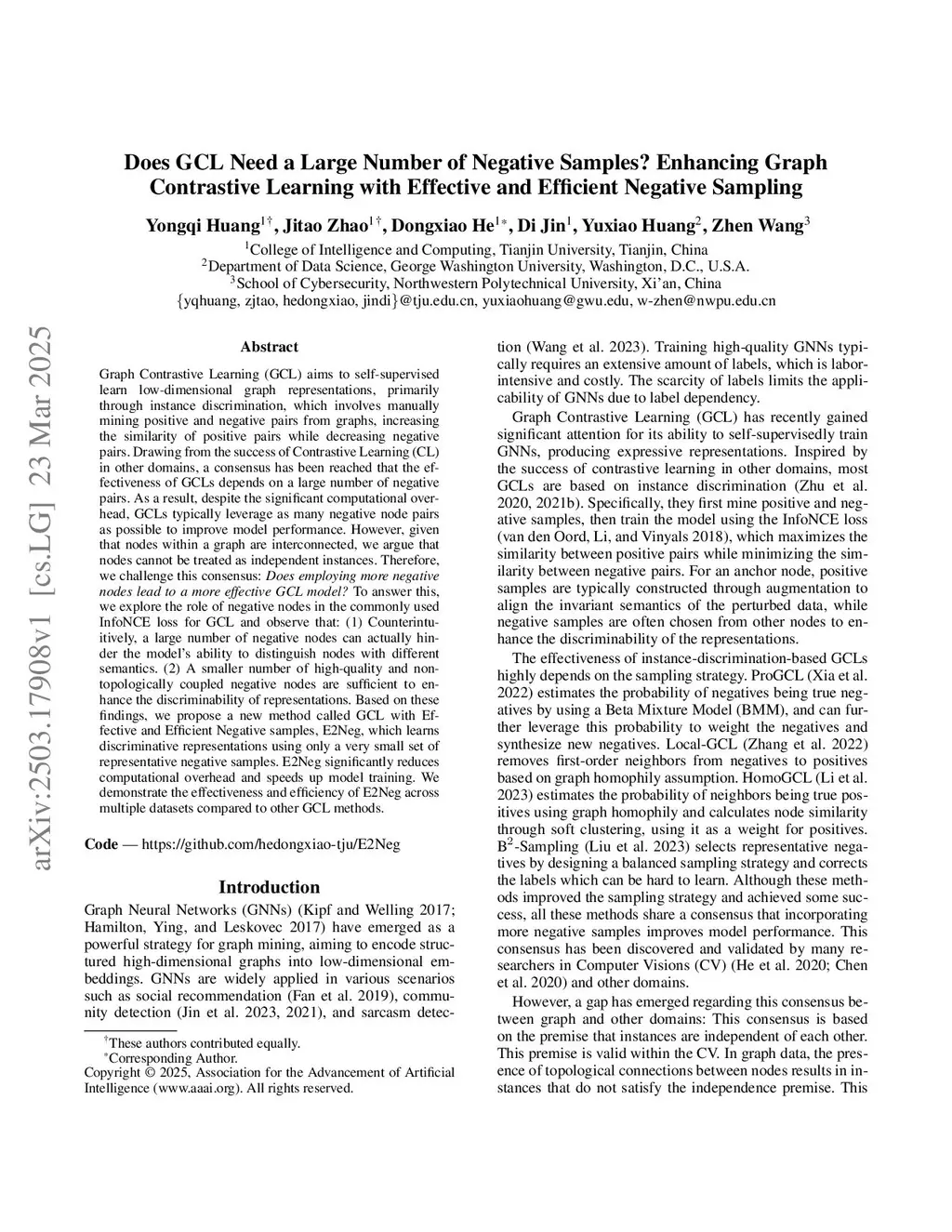 Graph Contrastive Learning (GCL) aims to self-supervised learn low-dimensional graph representations, primarily through instance discrimination, which involves manually mining positive and negative pairs from graphs, increasing the similarity of positive pairs while decreasing negative pairs. Drawing from the success of Contrastive Learning (CL) in other domains, a consensus has been reached that the effectiveness of GCLs depends on a large number of negative pairs. As a result, despite the significant computational overhead, GCLs typically leverage as many negative node pairs as possible to improve model performance. However, given that nodes within a graph are interconnected, we argue that nodes cannot be treated as independent instances. Therefore, we challenge this consensus: Does employing more negative nodes lead to a more effective GCL model? To answer this, we explore the role of negative nodes in the commonly used InfoNCE loss for GCL and observe that: (1) Counterintuitively, a large number of negative nodes can actually hinder the model's ability to distinguish nodes with different semantics. (2) A smaller number of high-quality and non-topologically coupled negative nodes are sufficient to enhance the discriminability of representations. Based on these findings, we propose a new method called GCL with Effective and Efficient Negative samples, E2Neg, which learns discriminative representations using only a very small set of representative negative samples. E2Neg significantly reduces computational overhead and speeds up model training. We demonstrate the effectiveness and efficiency of E2Neg across multiple datasets compared to other GCL methods.