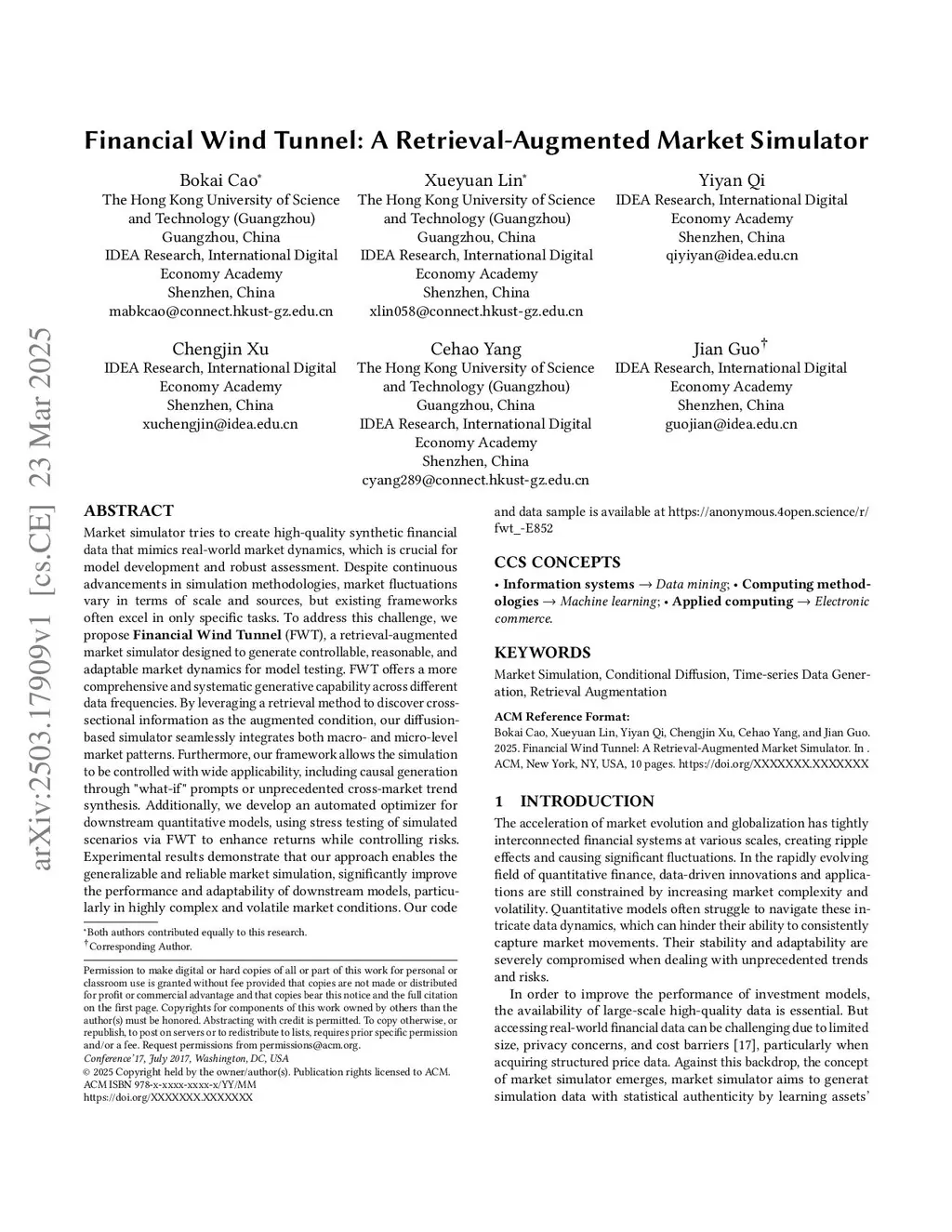Market simulator tries to create high-quality synthetic financial data that mimics real-world market dynamics, which is crucial for model development and robust assessment. Despite continuous advancements in simulation methodologies, market fluctuations vary in terms of scale and sources, but existing frameworks often excel in only specific tasks. To address this challenge, we propose Financial Wind Tunnel (FWT), a retrieval-augmented market simulator designed to generate controllable, reasonable, and adaptable market dynamics for model testing. FWT offers a more comprehensive and systematic generative capability across different data frequencies. By leveraging a retrieval method to discover cross-sectional information as the augmented condition, our diffusion-based simulator seamlessly integrates both macro- and micro-level market patterns. Furthermore, our framework allows the simulation to be controlled with wide applicability, including causal generation through "what-if" prompts or unprecedented cross-market trend synthesis. Additionally, we develop an automated optimizer for downstream quantitative models, using stress testing of simulated scenarios via FWT to enhance returns while controlling risks. Experimental results demonstrate that our approach enables the generalizable and reliable market simulation, significantly improve the performance and adaptability of downstream models, particularly in highly complex and volatile market conditions. Our code and data sample is available atthis https URL