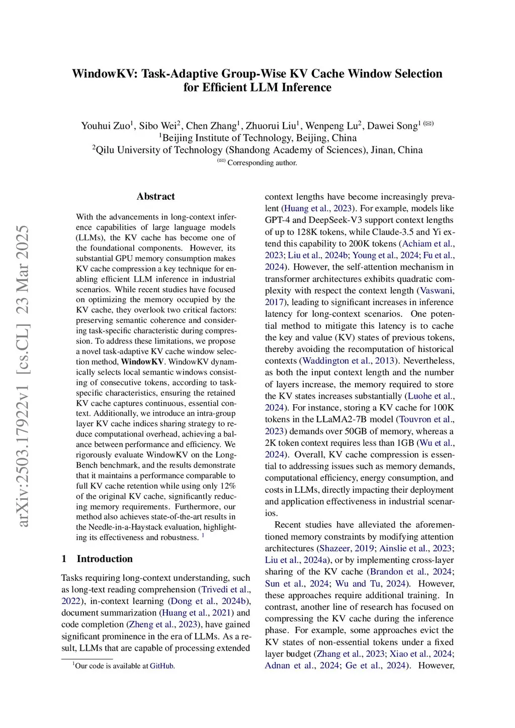 WindowKV: Task-Adaptive Group-Wise KV Cache Window Selection for Efficient LLM Inference