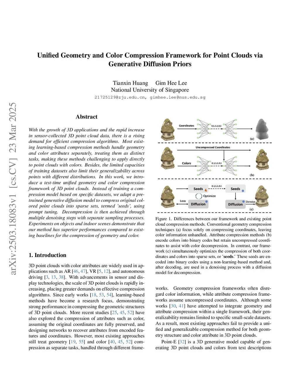 Unified Geometry and Color Compression Framework for Point Clouds via Generative Diffusion Priors
